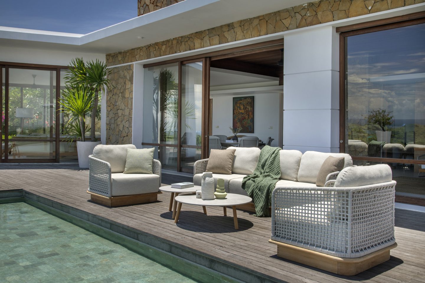 Im Außenbereich erwarten Sie komplette Kollektionen von Loungesofas, Tischen, Stühlen, Liegen, Pergolen, Sonnenschirmen sowie Beleuchtungs- und Heizlösungen, um Ihre Terrasse oder Ihren Garten das ganze Jahr über zu genießen. Alle Möbelstücke verbinden zeitgenössisches Design, Komfort und außergewöhnliche Langlebigkeit, ideal für die mediterranen Wetterbedingungen. Verwendet werden Premium-Marken wie Jati & Kebon, Manutti, Dedon, Gloster, Royal Botania, Heatsail und Rols, unter vielen anderen.