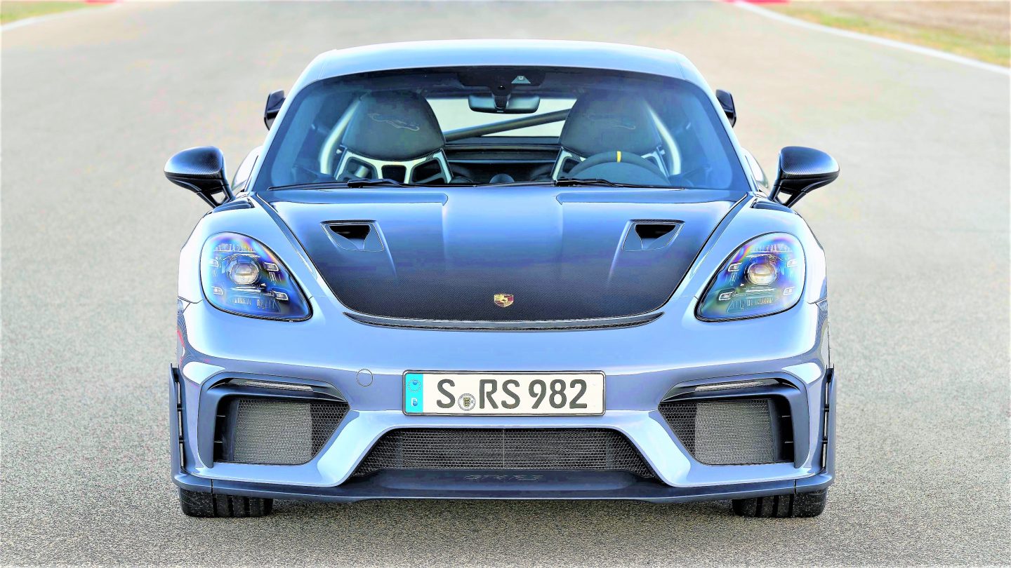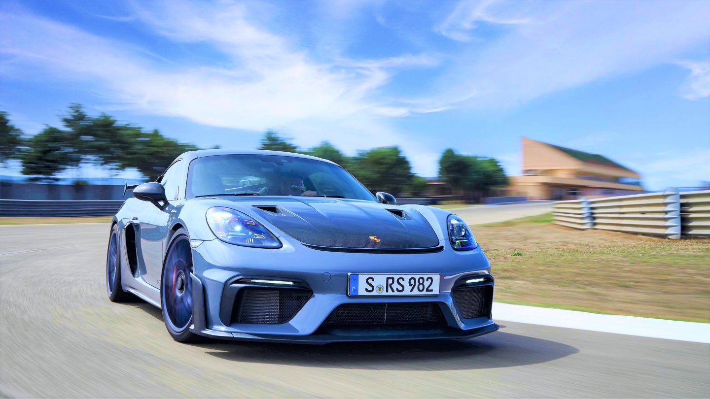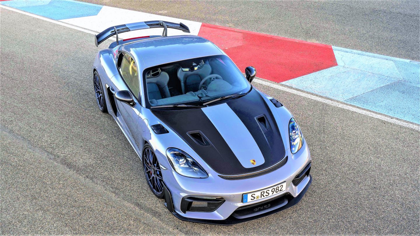 Der Porsche 718 Cayman GT4 RS ist das neue Topmodell der 718-Familie – ein kompromissloses Fahrerauto, das mit Leichtbau, einer besonders agilen Fahrwerksabstimmung, aufwendiger Aerodynamik und einer einzigartigen Soundkulisse punktet.“
