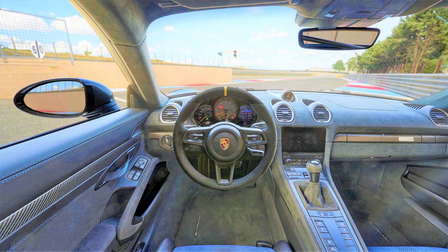 Ganz RS-typisch stand beim neuen 718 Cayman GT4 RS der Leichtbau im Fokus. Nach DIN, also vollgetankt und ohne Fahrer, bringt der Zweisitzer lediglich 1.415 Kilogramm auf die Waage. Das sind 35 Kilogramm weniger als beim 718 GT4 mit PDK. Erreicht wird diese Gewichtsabnahme durch den Einsatz von carbonfaserverstärktem Kunststoff (CfK), etwa bei der Fronthaube und den vorderen Kotflügeln. Leichtbauteppiche sparen ebenso Gewicht wie die Reduzierung des Dämmmaterials. Die Heckscheibe besteht aus Leichtbauglas. Leichtbau-Türverkleidungen mit textilen Öffnerschlaufen und Netzen an den Ablagefächern runden die Suche nach jedem überflüssigen Gramm ab.