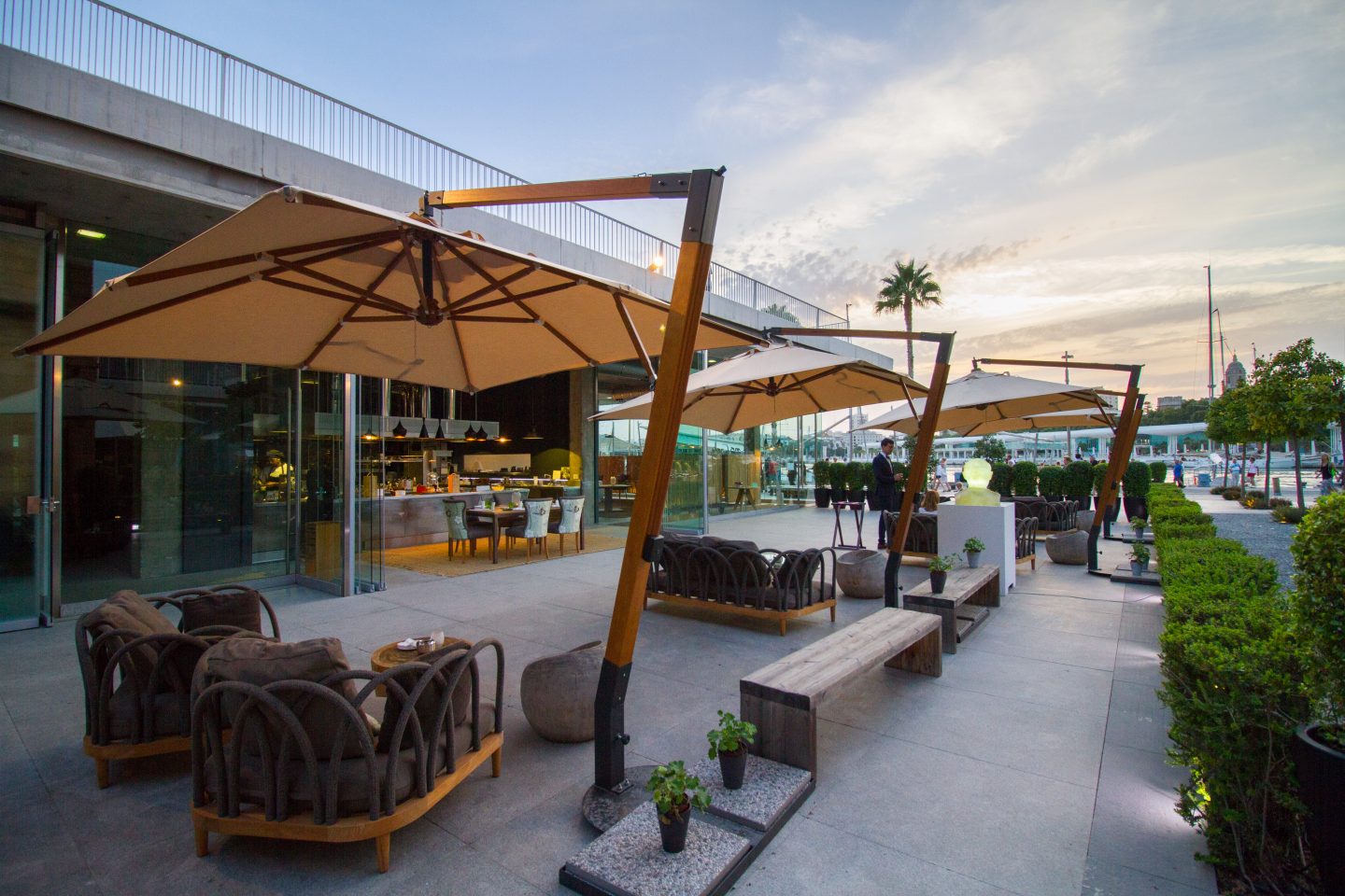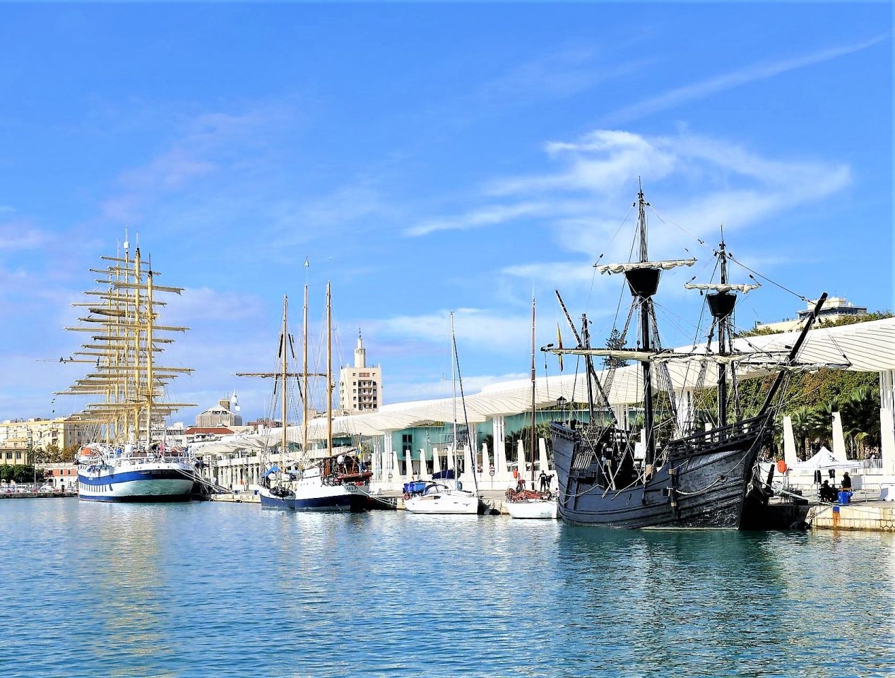 Von Restaurants der Haute Cuisine bis zu legeren und günstigen Etablissements. Dabei sind sie allesamt modern und elegant, wie auch die Tapas- und Lounge-Bars, die im ruhigeren Bereich liegen. Von dort aus kann man die im Wasser schaukelnden Yachten und Segelboote bewundern, mit der Silhouette des Zentrums von Málaga im Hintergrund.