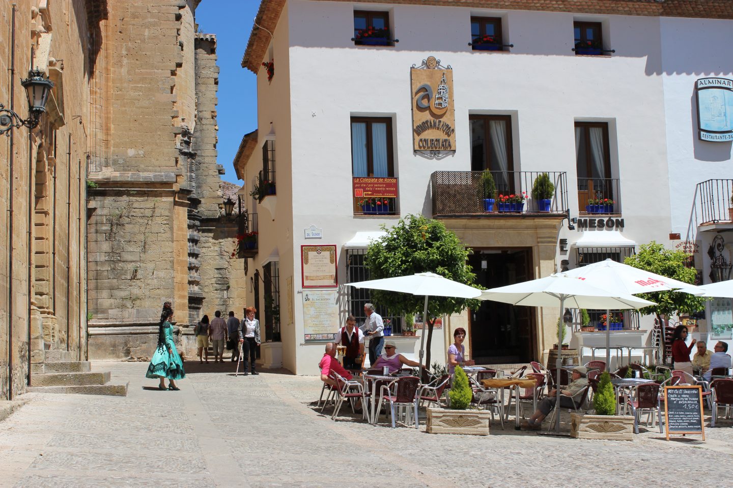 Auch der schönste Platz der Stadt, Plaza Duquesa de Parcent, auf der die Hauptkirche Rondas steht, beeindruckt mit beindruckenden Häusern und schmiedeeisernen Gitterbalkonen. Der Eingangsraum der schönen Iglesia Santa Maria la Mayor öffnet sich nach einer Seite zur reich verzierten Gebetsnische der Moschee, die früher an diesem Platz stand. Die Kirche wurde nach christlicher Eroberung Rondas erbaut, bei der Stile aus Gotik und Renaissance liebevoll aufeinander stoßen.