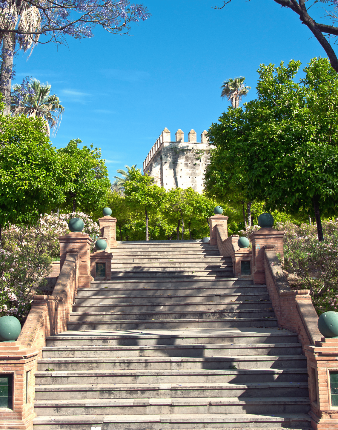 Parque de Jerez de la Frontera: Ein weitläufiger Stadtpark, der Ruhe und Natur mitten in Jerez bietet. Besonders imposant ist die breite Treppe, die hinauf zum Park führt und schon beim Aufstieg einen ersten Blick auf die gepflegten Alleen und üppigen Grünflächen gewährt – ein perfekter Ort für einen Spaziergang abseits der geschäftigen Straßen der Altstadt.