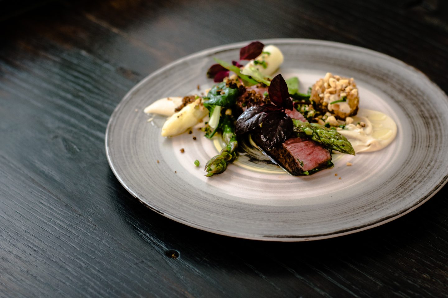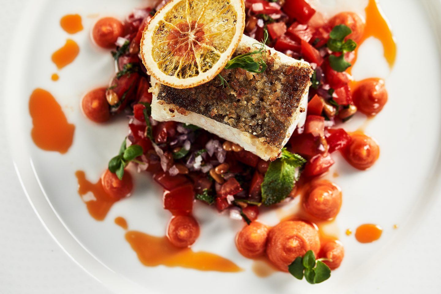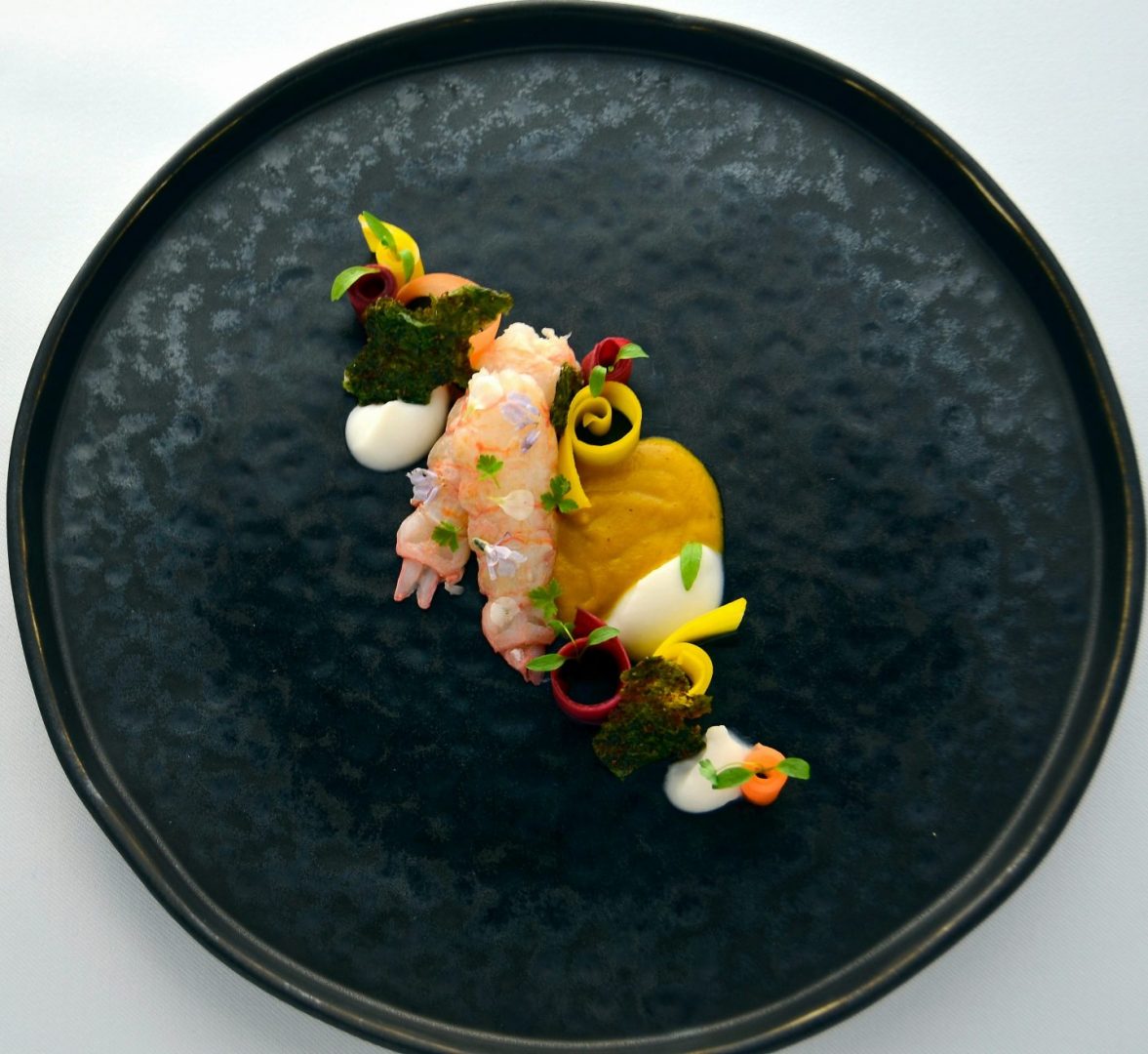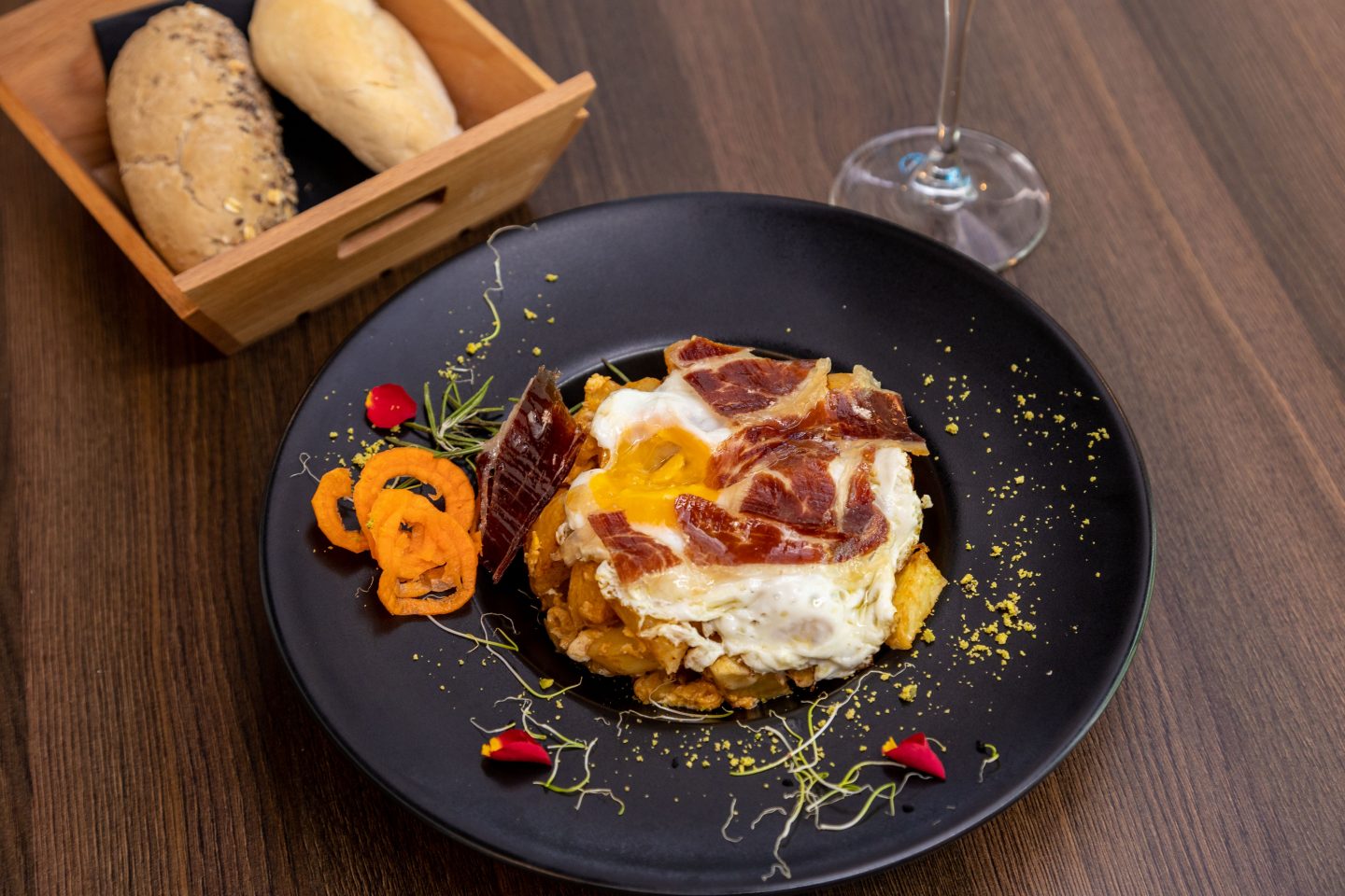 Altbewährte Rezepte erleben eine Renaissance – nur eben anders gedacht. Ein Cochinillo confitado wird zart in süßem Wein glasiert, rustikale Patatas revolconas kehren als feine Beilage zurück. Selbst vertraute Gerichte gewinnen durch neue Aromen und frische Präsentation an Leichtigkeit. Besonders die Fischküche zeigt spannende Entwicklungen: Bacalao zum Beispiel auf einem Bett aus gerösteten Pinienkernen, etwas schwarzem Reis, gefärbt mit Tintenfischfarbe, Paprika, begleitet von Paprika-Möhren-Püree und einer feinen Sauce aus süßem Wein. Zahlreiche weitere kreative Fisch-Kreationen laden dazu ein, Altbekanntes auf ganz neue Weise zu entdecken.
