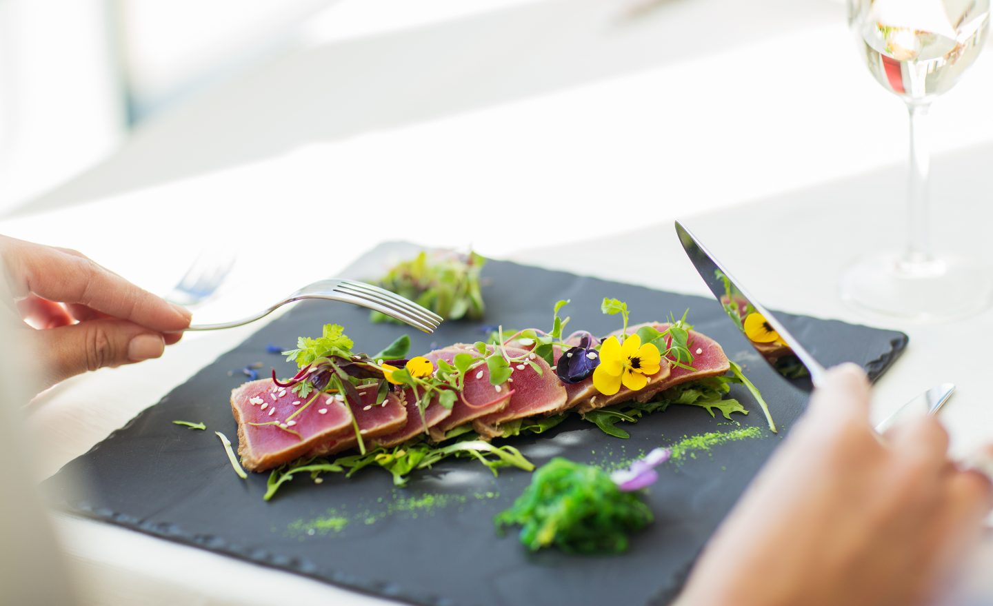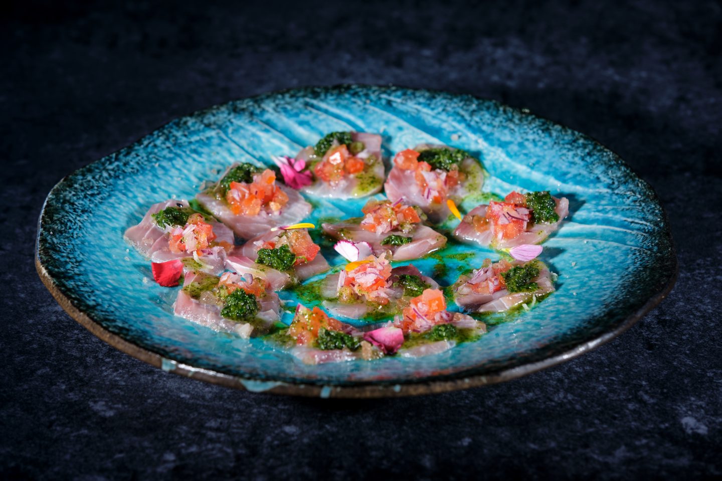 Carpaccio de Lubina – Wolfsbarsch trifft Kräuterpesto und Tomatentatar