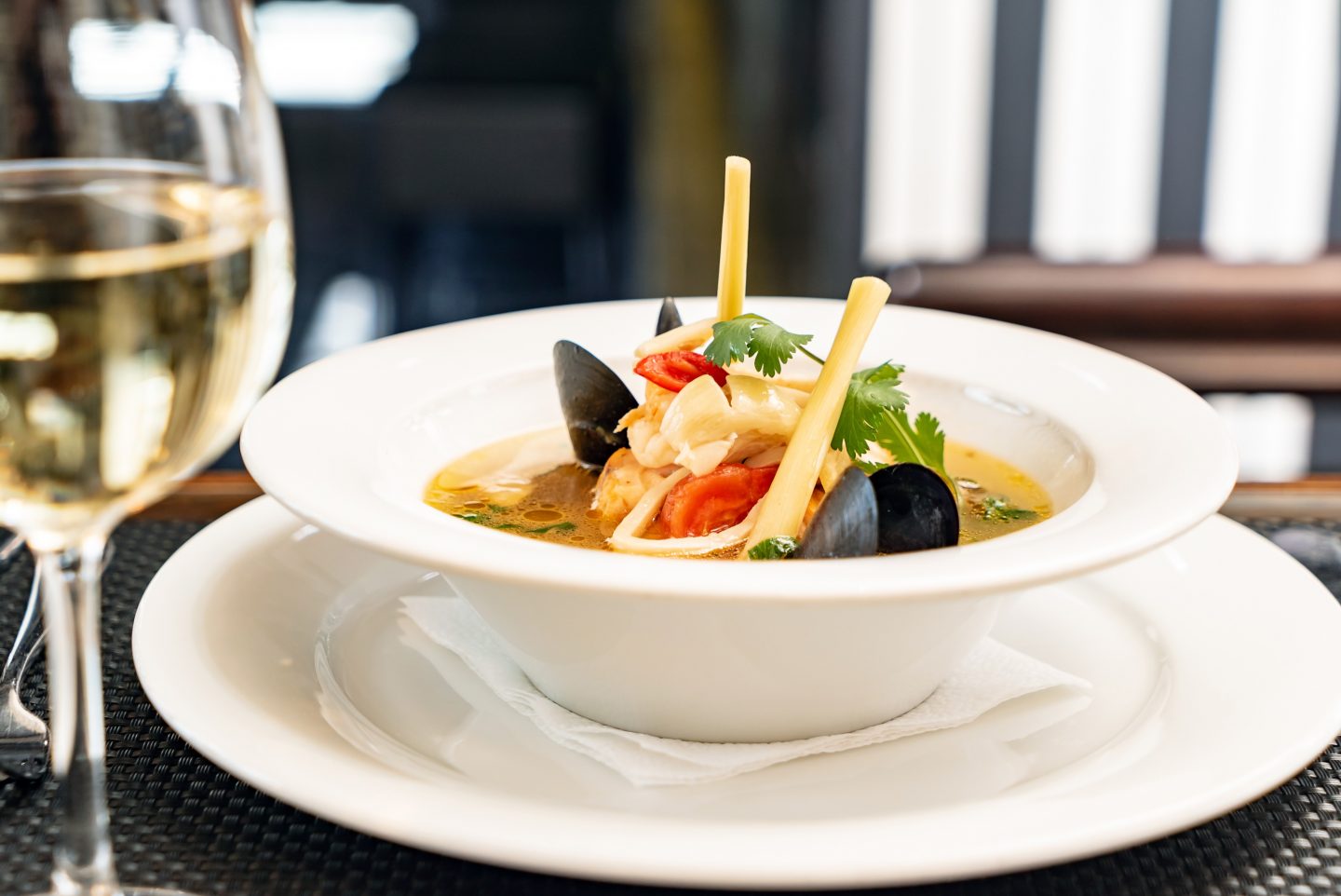 Diese traditionelle Suppe nutzt den Fang des Tages: Rotbarben, Gambas, Muscheln und kleine Fische werden mit Knoblauch, Paprika und frischen Kräutern langsam gegart. Das Ergebnis ist eine klare, aromatische Brühe, die die natürliche Süße der Meeresfrüchte betont. Serviert wird sie oft mit einem Stück geröstetem Brot, das die Aromen aufnimmt.