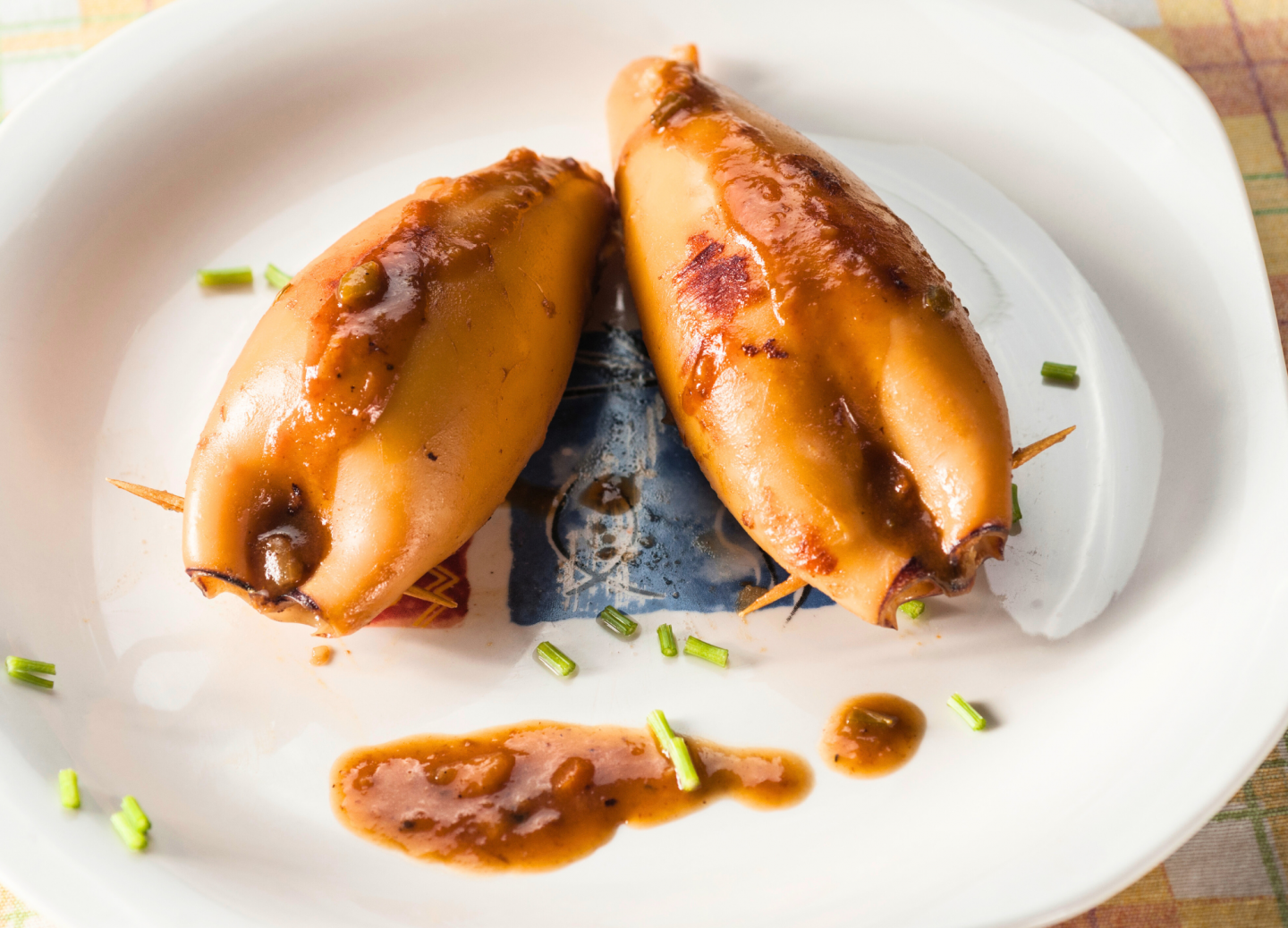 Calamares rellenos con salsa de almendras —– Tradition und Geschmack