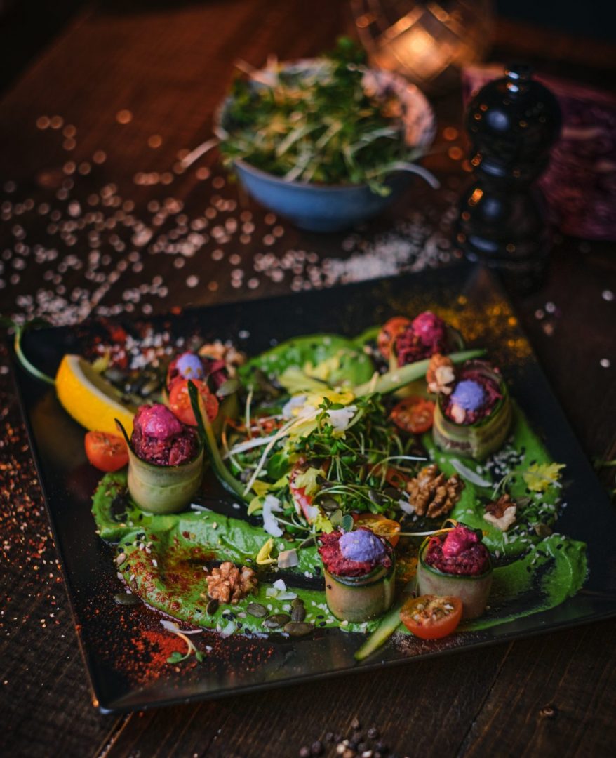 Für Liebhaber der leichten Küche bieten kreative Vorspeisen wie gebratene Paprika-Kalbsschulter-Mini-Tacos auf Maisblättern mit Limetten-Joghurt und geräucherter Morilla-Pilzsalsa eine spannende Fusion aus Street-Food-Ideen und regionalen Produkten.