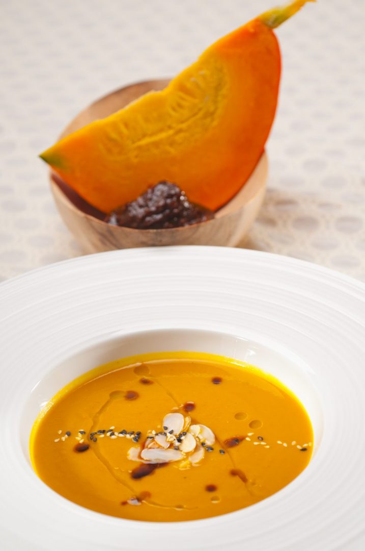 Tartar-Bowls mit Jamón Ibérico und karamellisierten Mandeln zeigen die moderne Finesse der Stadt: frische Zutaten, feine Würze und ein Kontrast von cremig und knusprig. Kürbiscremesuppe mit gerösteten Mandeln einigen Tropfen Trüffelöl und Sesamkörnern vermitteln Wärme und Tiefe.