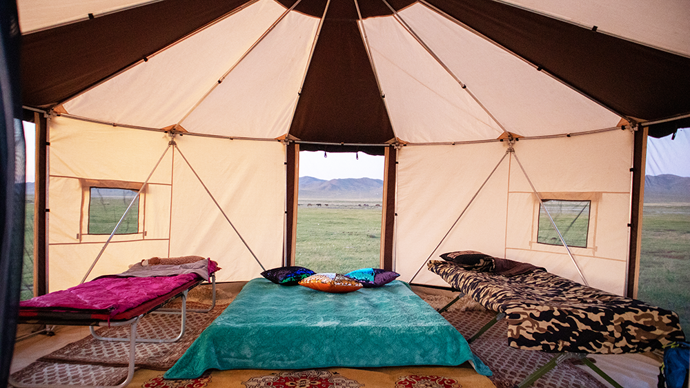 Das GerTent bietet einen komfortablen Wohnraum mit knapp 50 qm, es kann in 10-15 Minuten von zwei Personen zusammengebaut werden. Das Zelt hat Tests auf Wasser- und Wind erfolgreich bestanden, einfacher Transport, es passt in jedes Fahrzeug. Die runde Form ermöglicht eine optimale Belüftung und gleichmäßige Wärmeverteilung. Es gibt einen Schlafbereich und einen zusätzlichen Eingangsbereich mit vier möglichen Türen.